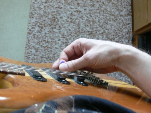 Tällaisenkin ihmeellisyyden huomasin omassa tekniikassani. Kutsun tätä piiskan iskuksi. Tällä tekniikalla on käytännössä mahdotonta osua pelkästään yhteen kieleen vaan vasemman käden täytyy huolehtia siitä että viereiset kielet on sammutettu. Kuten arvata saattaa, tämä saattaa olla hupaa kielille. Plektrasta pitää opetella melko joustava ote tai sitten pitää käyttä riittävän taipuisaa plektraa.